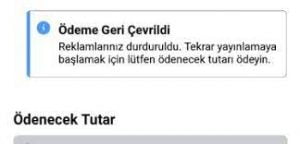 Reklam ödemesi yapamıyorum,genelde bankalar ile alakalı sorundur bankalar bazı facebook’dan gelen harcamaları onaylamazlar veya günlük internet alışveriş çekim limitiniz yetmeyebilir bu yüzden instagram reklam ödeme sorunu alıyor olabilirsiniz. Ödeme yapmadıgınız içinde Reklam Hesabı Devredışı Bırakıldı hatasını alıyor olacaksınız.